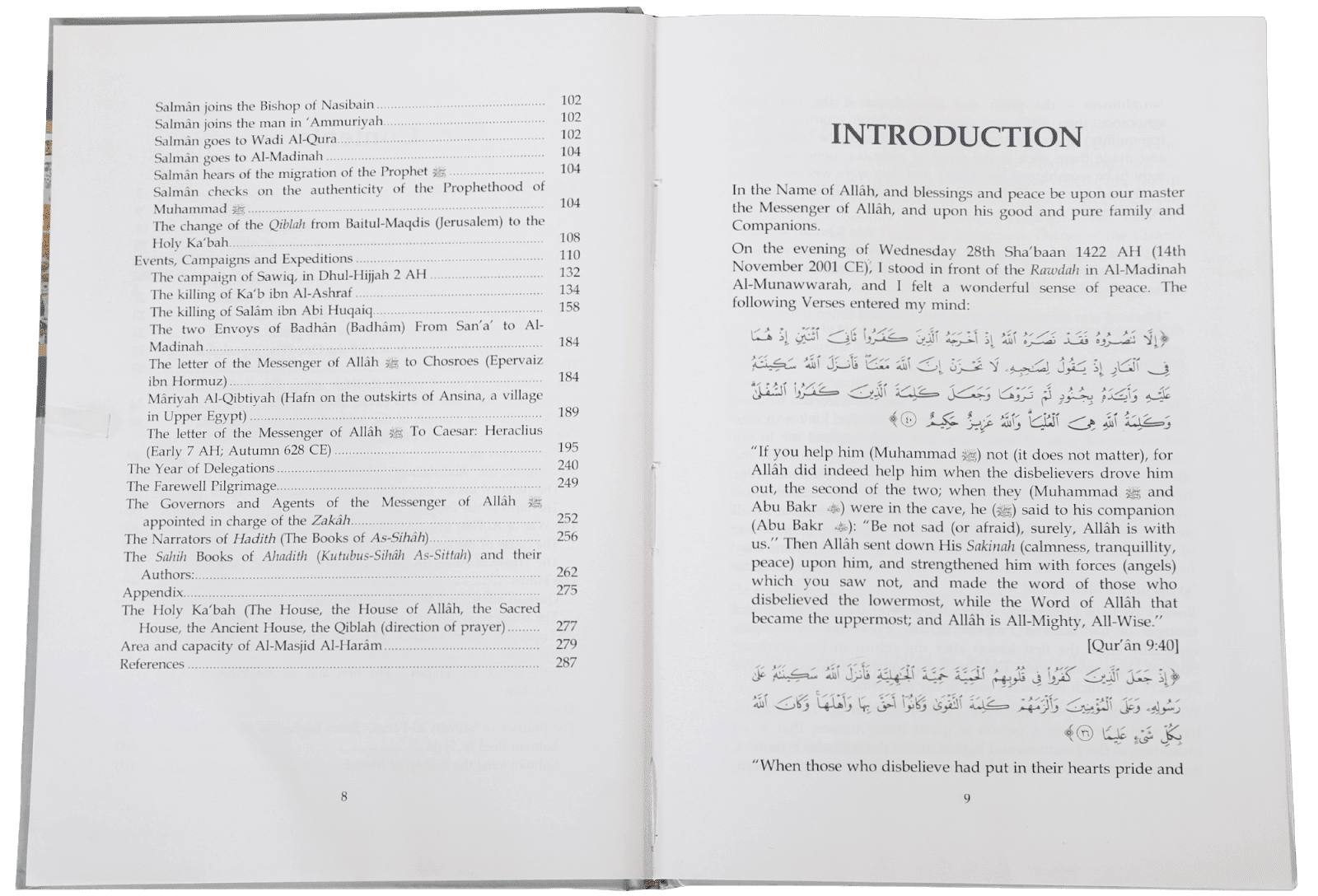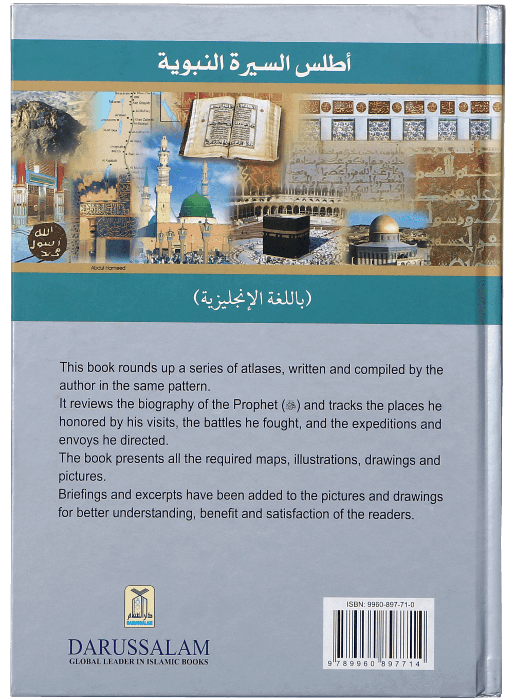 یہ کتاب حضرت محمد ﷺ کی سیرت مبارکہ کے ساتھ ساتھ اُن جگاؤن کا بھی احاطہ کرتی ہے جہاں آپ ﷺ نے اپنے قدم مبارک رکھے، جہاں آپ ﷺ نے جنگیں لڑیں اور جہاں آپ ﷺ نے احکامات جاری فرمائے۔ اس کتاب کے مطالعے سے قاری میں محبت رسول ﷺ کی سچی لگن پیدا ہوگی۔ This book rounds up a series of atlases, written and compiled by the author in the same pattern. It reviews the biography of the Prophet (PBUH) and tracks the places he honored by his visits, the battles he fought, and the expeditions and envoys he directed. The Book presents all the required maps, illustrations, drawings and pictures. B Briefings and Excerpts have been added to the pictures and drawings for better understanding, benefit, and satisfaction of the readers.